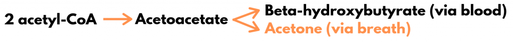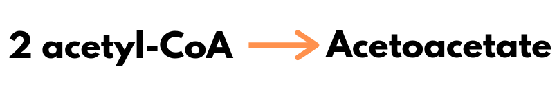 So how does this happen? The simplest way to think about this is that 2 acetyl-CoA molecules combine and eventually result in formation of a new molecule called acetoacetate.